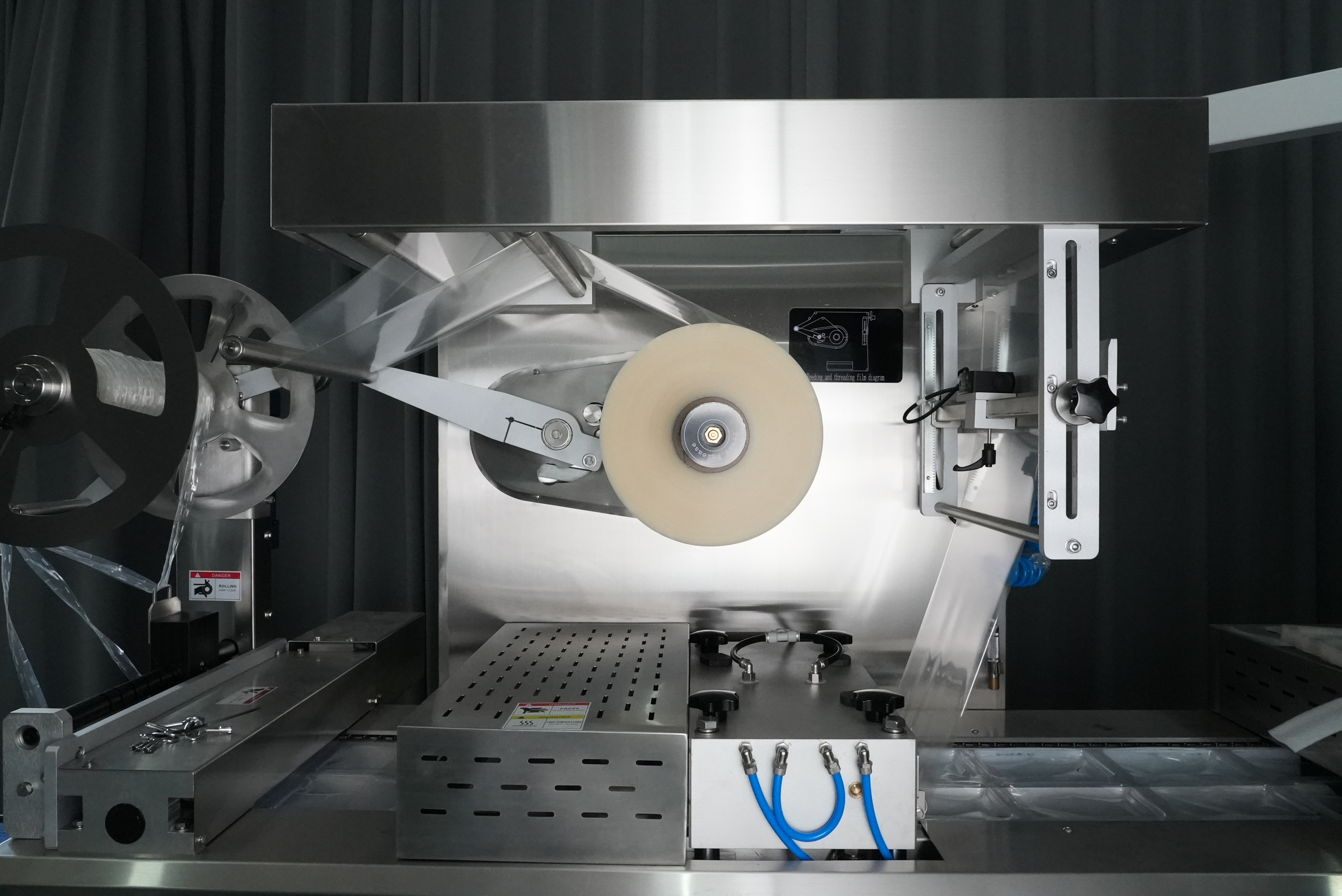 تدمج آلة التغليف الحرارية التلقائية هذه العملية الكاملة للملء ، الحشو ، الختم والشق ، إلخ. وقد تم تجهيز الماكينة بمضخة فراغ Busch 200m3/ساعة ومبرد خارجي ، والذي يتمتع بكفاءة عالية في الإنتاج ويحسن القدرة الإنتاجية للمصنع.